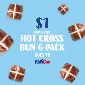 To show their support and to mark the reopening of their 23 bakeries across the country, Bakers Delight will be donating $1 from every 6-pack of Hot Cross Buns to KidsCan.