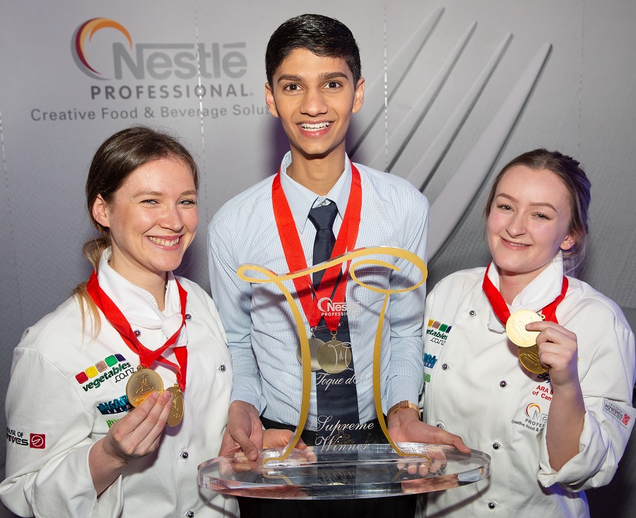 A team from the Ara Institute of Canterbury fought off fierce competition from around the country to win the top award in the prestigious annual Nestlé Toque d’Or student culinary competition.