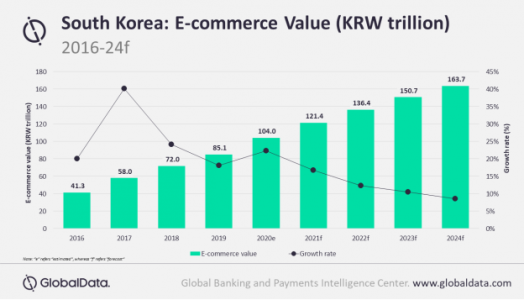 An analysis of GlobalData’s E-Commerce Analytics has revealed that the country’s e-commerce market is estimated at KRW104.0 trillion (US$90.1bn) in 2020, registering an annual growth of 22.3 percent. This is expected to grow at a compound annual growth rate (CAGR) of 12.0 percent to reach KRW163.7 trillion (US$141.8bn) in 2024.