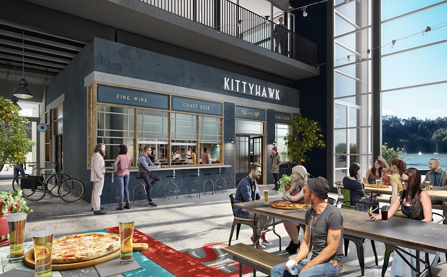 Two additional dining options are located inside the brewery – Salty’s, serving seafood dishes including a variety of fish and chips and seafood delights, and Kittyhawk, a café bistro.