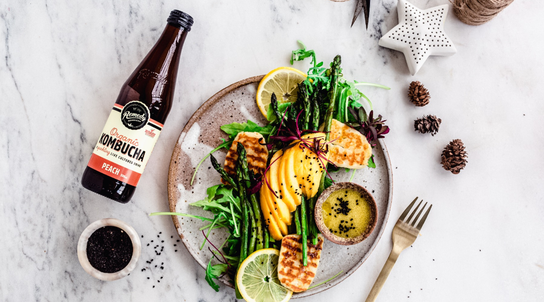 - 1/4 cup Remedy Peach Kombucha