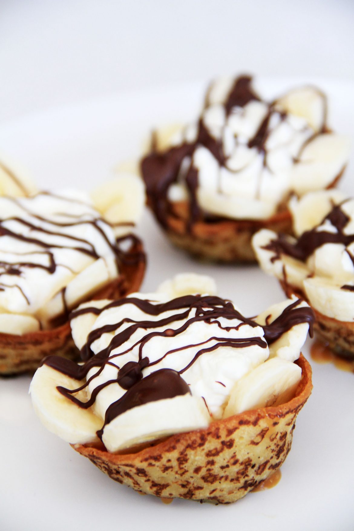 Melt down the chocolate and drizzle across the crepe cups.