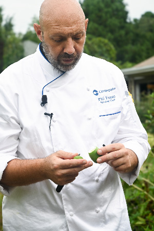 Sweet Peas was Evans’ first visit. From a chef’s perspective, he found the site to be alive with culinary inspiration: Edible flowers, Sungold tomatoes, passion fruit, microgreens, and arugula (rocket) in all its spiky, peppery glory.